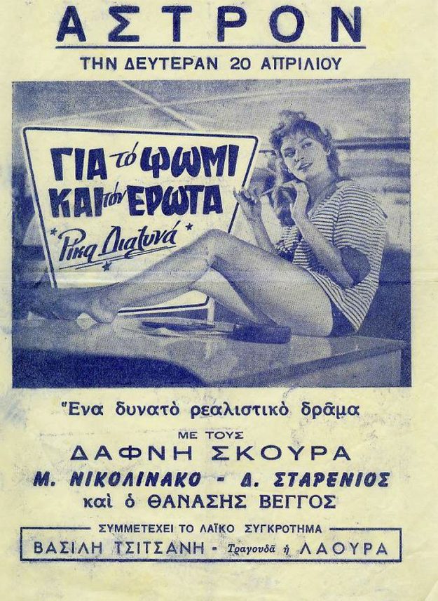Για το Ψωμί και τον Ερωτα 1959, πρόγραμμα κινηματογραφικής αίθουσας
