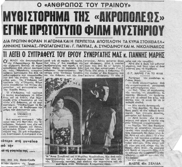 ‘Ο ΑΝΘΡΩΠΟΣ ΤΟΥ ΤΡΑΙΝΟΥ’, ΚΡΙΤΙΚΗ ΣΤΗ ΕΦΗΜΕΡΙΔΑ ΑΠΟΓΕΥΜΑΤΙΝΗ ΣΤΙΣ 21/1/58 Αρθρα κινηματογραφουBy nikolin_admin26/04/1958